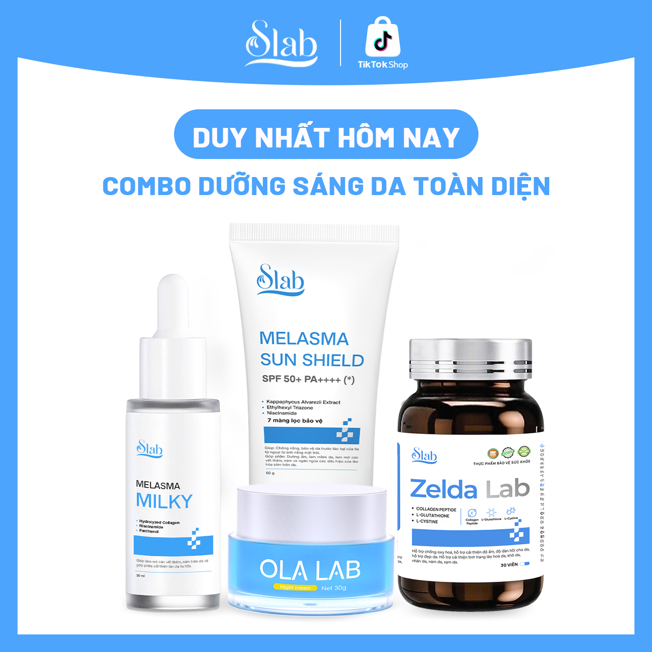 - Viên uống Zelda Lab: hỗ trợ sáng da và chống oxy hóa từ bên trong, giúp giảm sạm, tăng sức đề kháng da, cải thiện rõ sắc tố sau 4 tuần.